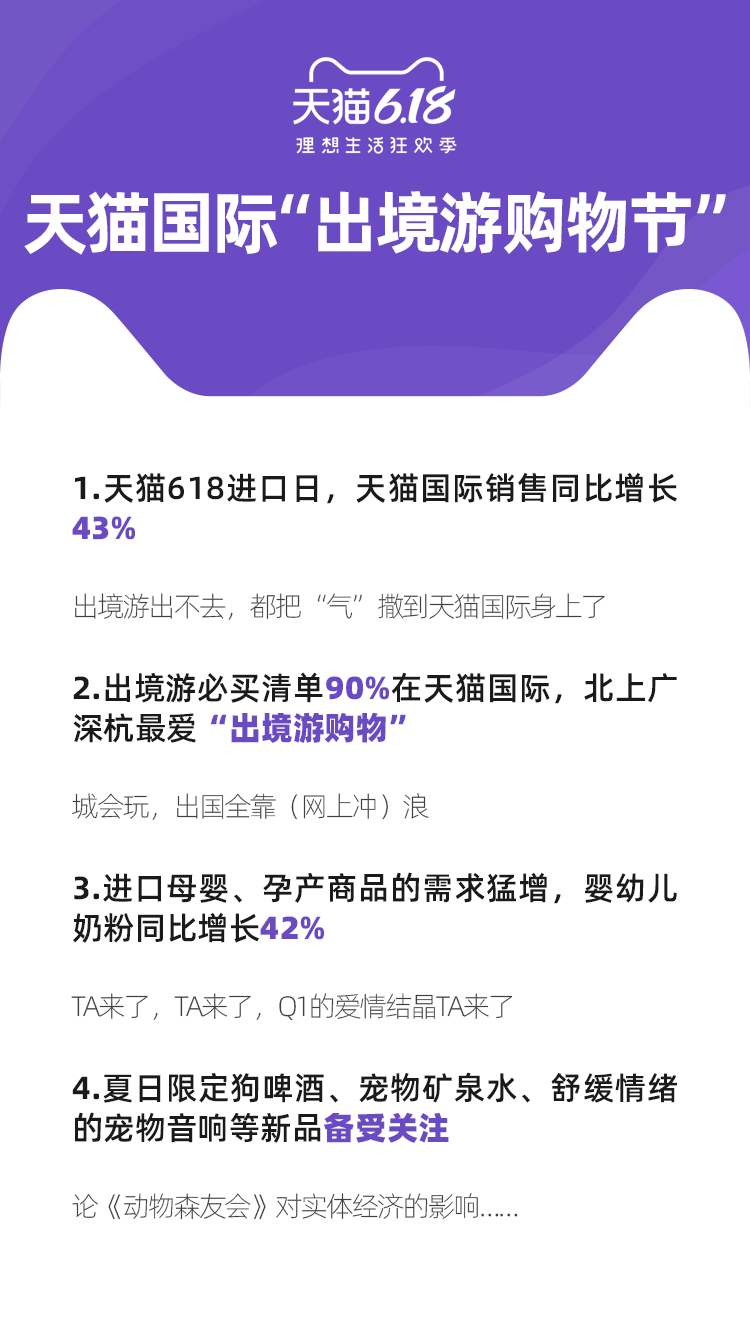 全球疫情下,出境游熔斷,國(guó)人出境游消費(fèi)熱情都釋放在天貓國(guó)際。今年,共有全球92個(gè)國(guó)家和地區(qū)的25000多個(gè)海外品牌“趕集”天貓國(guó)際618,首發(fā)新品超40萬件,天貓國(guó)際618成為規(guī)模最大的“出境游購(gòu)物節(jié)”。出境游必買清單90%在天貓國(guó)際,滿足消費(fèi)者不出國(guó)照樣買全球的需求。