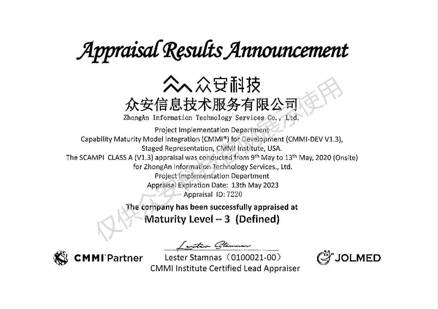 速途網6月16日消息(報道:李楠)近日,CMMI研究院對外公示,眾安信息技術服務有限公司(以下簡稱“眾安科技”)正式通過CMMI-ML3資質認證。此次認證通過,標志著眾安科技以大數據、云計算、人工智能、區塊鏈等技術為核心,將為金融保險行業客戶,提供具備國際標準的軟件工程服務和項目管理能力。