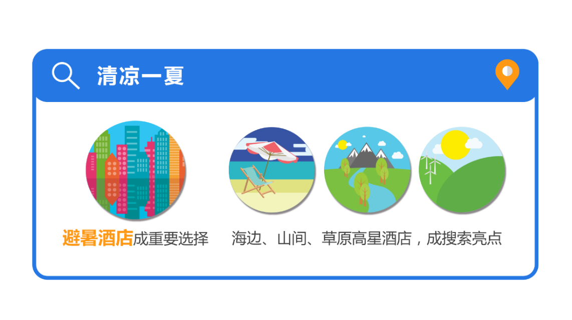 暑期酒店的預訂也呈現出一些與其他小長假不一樣的特點——避暑。根據《報告》,相對而言,南方旅客更喜歡搜臨近海邊、山間、草原的高星酒店,選擇“清涼一夏”。