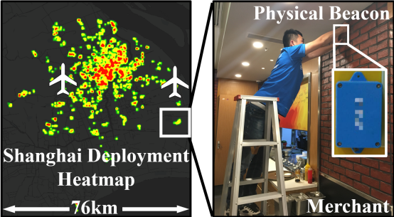 此次入選的論文來自阿里本地生活研究院團隊。長期以來,騎手到店/離店監測問題是外賣配送過程中的重要一環。準確的到店時間對于合規判責、出餐時間預估、騎手停留時間預估和履約時間預估等方面均有很大價值?;诂F有評判標準存在的問題,研究團隊繞過傳統的“騎手點擊到店+GPS圍欄”方式,用“藍牙信標系統”解決這一問題。自2017年開始,餓了么在上海12000家商戶部署了藍牙信標設備,并在此基礎上在全國范圍內建立了由超過200萬終端構成的虛擬藍牙信標系統。除了更精準,該系統的藍牙加密廣播技術能同時保護商戶和騎手的位置隱私。
