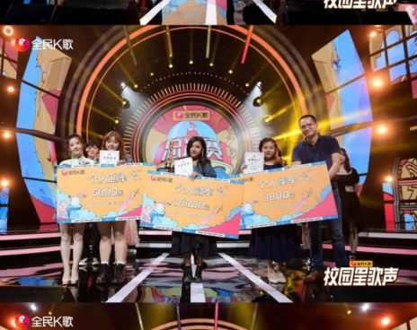 本屆大賽全國總決賽的個人冠軍獲得全民K歌提供的1萬元星夢獎金;冠軍校隊獲得10萬元星夢獎金。騰訊音樂娛樂集團全民K歌總經理計鳴鐘、騰訊音樂娛樂集團全民K歌副總經理傅鴻城、騰訊音樂娛樂集團全民K歌市場部總經理陳菲菲與三位”明星筑夢官“一起為獲獎的選手和校隊頒獎并合影。
