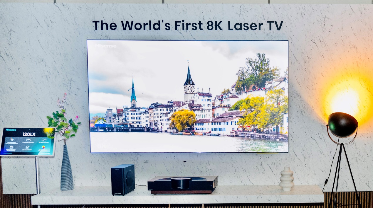 在主題演講中,于芝濤還重點介紹了海信最新推出的折疊屏激光電視產品。這款激光電視屏幕框架可折疊,屏幕膜片柔性可卷曲,實現了分體入戶,即使是屏幕大到 120 英寸,也可以輕松進入特別狹窄的空間,無需拆除門窗或使用任何重型設備,解決了消費者購買超大尺寸電視運輸難、安裝難的痛點。