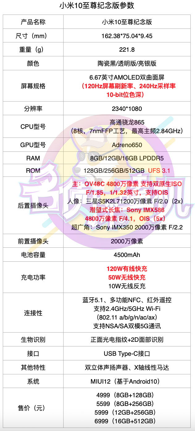 在小米十周年演講上,小米集團創始人、董事長兼CEO發布了小米10至尊紀念版,作為官方定義的“十周年集大成之作”,在屏幕升級到120Hz、增加最大120倍數碼變焦的潛望式長焦鏡頭之外,更是首發量產了120W的超級閃充功能。