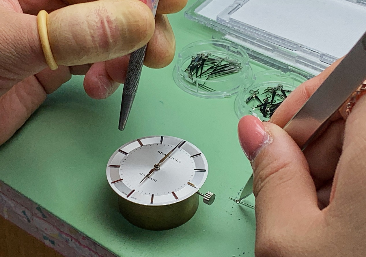 海鷗是少數從零件、機芯到組裝全包的手表廠。一只手表誕生的工序不少:上游工廠湊齊100多個零件,然后分到裝配廠組成機芯,最后送到套件廠上表盤。2000年之前,手表廠只負責生產表頭,顧客還要在百貨站另行配表帶。