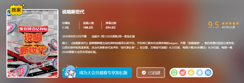 截至目前,《說唱新世代》總播放量已突破1.2億,彈幕數超過240萬,豆瓣評分高達8.9。節目熱度呈現持續走高的趨勢,引發網友“一周兩更”的催更呼聲。