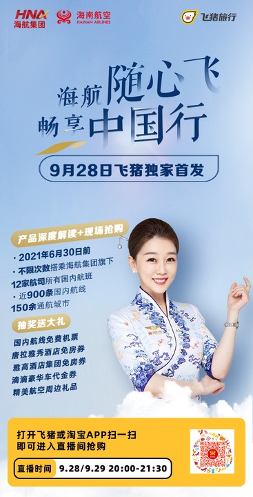 消費者可在9月28日及29日20:00~21:30通過飛豬APP“海航航空飛豬直播間”參與搶購。該產品支持同一始發機場至同一到達機場至多6次兌換,并支持同一賬戶下多位乘機人在行程一致的情況下同時預定,可謂相當方便。