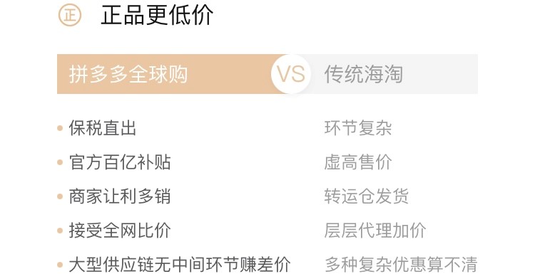 ▲拼多多“百億補貼”的進口美妝產品均來自國內大型供應鏈和保稅倉,通過保稅直出和官方補貼等綜合舉措,達到“正品更低價”的目標。