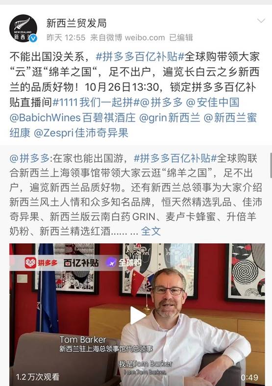 ▲拼多多“百億補貼”直播間落地新西蘭駐滬總領事館,集合新西蘭眾多知名品牌,帶領大家足不出戶,領略新西蘭風土人情,買遍拼多多百億補貼新西蘭海外優質好貨。