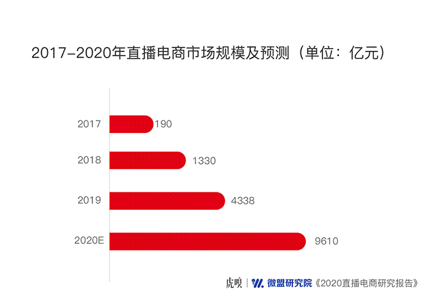 艾媒咨詢數據顯示,2019年中國直播電商行業總規模為4338億元,預計2020年國內直播電商行業規模將達到9610億元,接近萬億級體量,更有說法預測到2021年規模將達到兩萬億。全民直播時代正在到來,還遠未結束。