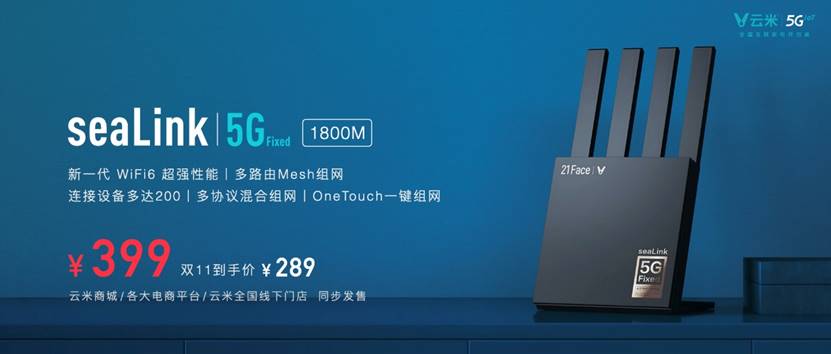 可以說,seaLink 5G Fixed為5GIoT全屋互聯而生。seaLink 5G Fixed 3000M售價999元,seaLink 5G Fixed 1800M售價為399元,雙11更有優惠價。