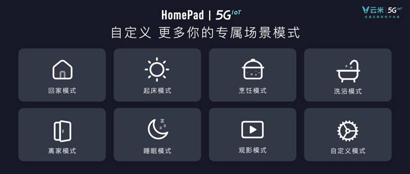 革命2:多種智能場景模式。HomePad 5GIoT內置離家模式、回家模式、看電影模式等多種智能場景模式,可瞬間實現多個產品的自動啟停或調節,還能根據家庭喜好、個人習慣等實際情況進行專屬模式自定義,充分滿足每個家庭的個性化需求,便利程度不言而喻。