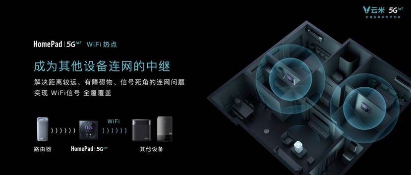 革命3:成為家庭WiFi熱點。HomePad 5GIoT還可以化身WiFi熱點,作為其他設備連網的中繼,幫助家庭更好地實現WiFi信號的全屋覆蓋。