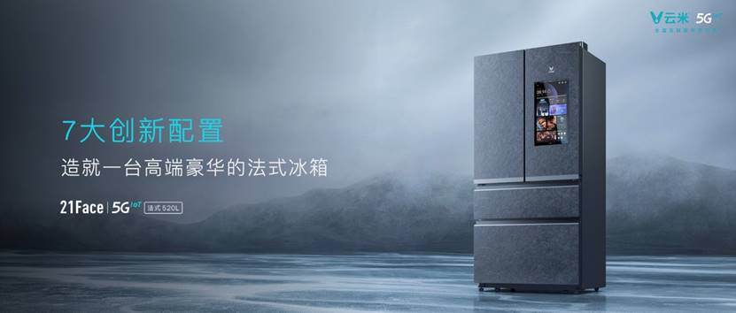 此外,作為高端好冰箱,云米5GIoT大屏冰箱還擁有包括520L超大容量、矢量變頻、風冷無霜等多項業內一流配置。高端豪華,科技領先,21Face云米5GIoT大屏冰箱(法式520L)僅售12999元。