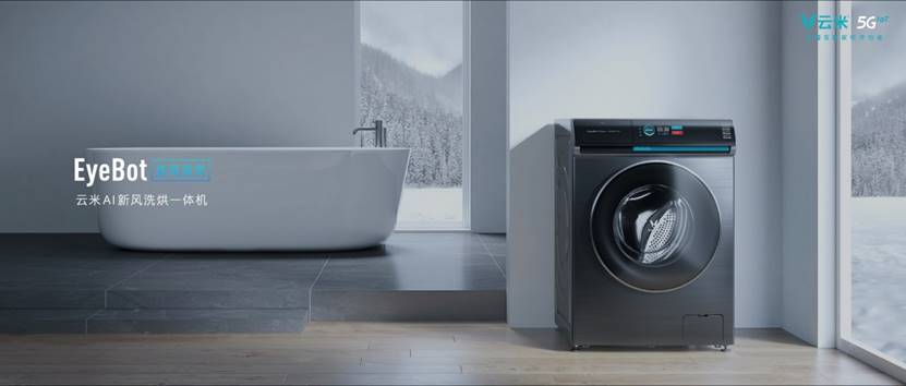 發布會上,云米發布了一款名為EyeBot智目洗的劃時代AI智能洗衣機,云米通過5GIoT結合AI算法,實現了洗滌過程智能化、洗滌結果可視化。該款洗衣機搭載了微光譜水質感應的核心技術,能夠實時監測水質變化,同時配備AI智能算法,可精準感知衣物濁度和洗衣液殘留程度。