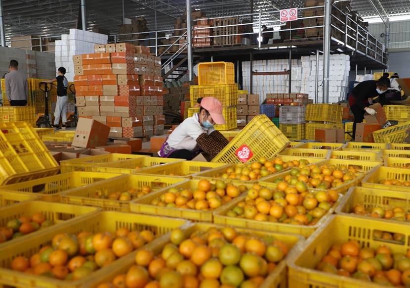 劉闖的倉庫里,每天都有大量的皇帝柑在拼多多上銷往全國各地。(李峰攝)