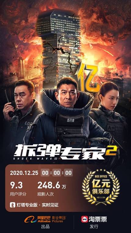 速途網(wǎng)12月25日消息(報(bào)道:李楠)昨日,由阿里影業(yè)出品、淘票票發(fā)行的影片《拆彈專家2》累計(jì)票房破億,創(chuàng)下賀歲檔首日票房紀(jì)錄,并得到淘票票9.3分、豆瓣8.1分的超高口碑。《拆彈專家2》成績(jī)離不開影片過硬的內(nèi)容品質(zhì),同時(shí)也得益于以燈塔“沖擊播”為王牌產(chǎn)品的阿里影業(yè)新營(yíng)銷矩陣的助力。