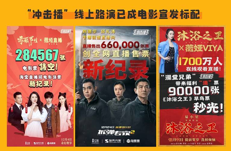 12月初,轟動(dòng)全網(wǎng)的《拆彈專家2》×薇婭“沖擊播”線上路演創(chuàng)下66萬售票全網(wǎng)新紀(jì)錄,成為業(yè)內(nèi)新高峰。據(jù)統(tǒng)計(jì),進(jìn)入賀歲檔以來,阿里影業(yè)出品及發(fā)行影片《赤狐書生》、《沐浴之王》、《拆彈專家2》,以及《緊急救援》、《晴雅集》等影片均借力“沖擊播”線上路演,為影片宣發(fā)贏得熱度及票房轉(zhuǎn)化。“沖擊播”基本實(shí)現(xiàn)賀歲檔影片全覆蓋。