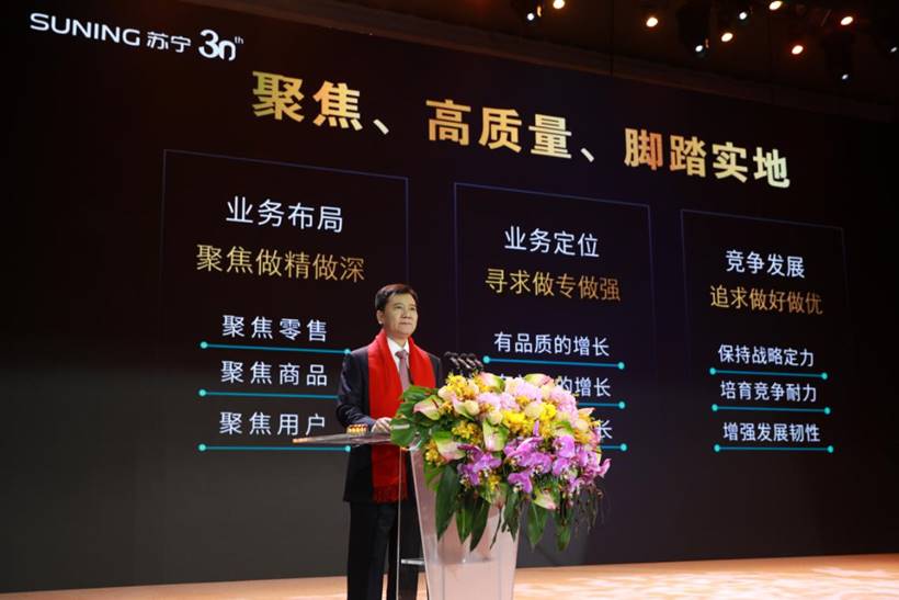 “在新的時代背景下,企業發展導向更加清晰,就是要聚焦、高質量、腳踏實地。”張近東指出,下個十年,蘇寧將聚焦零售主業,在業務層面做精做深、做專做強、做好做優。