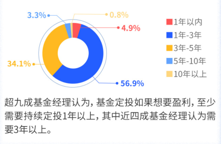 另外,對(duì)于個(gè)人投資者普遍關(guān)注的投資賺錢(qián)難問(wèn)題,基金經(jīng)理也給出了專業(yè)看法與投資建議。絕大部分基金經(jīng)理認(rèn)為,個(gè)人投資者賺錢(qián)難的三大原因在于“追漲殺跌、持有時(shí)間短、交易頻繁”。超九成基金經(jīng)理認(rèn)為,基金定投如果想要盈利,至少需要持續(xù)定投1年以上,其中近四成基金經(jīng)理認(rèn)為需要3年以上。