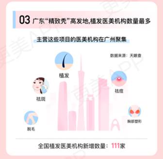 “我國超2.5億人受脫發(fā)困擾”等脫發(fā)話題多次登上熱搜,“禿”如其來已成為當代年輕人普遍面臨的問題。更美白皮書數(shù)據(jù)也顯示,2020年全國植發(fā)醫(yī)美機構新增數(shù)量111家,其中廣州植發(fā)醫(yī)美機構數(shù)量最多,是“精致禿”高發(fā)地。