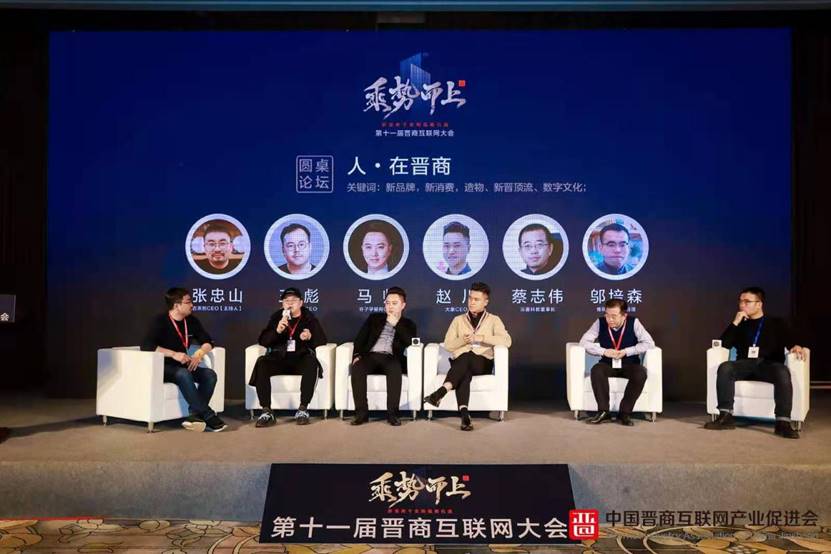 “人?在晉商”環節,古茶到CEO張忠山,十二棟文化CEO王彪先生,谷子孕嬰網CEO馬帥,大象CEO趙川,濼喜科教董事長蔡志偉共同討論了新晉商人如何利用“重做思維”做新品牌、新消費、造物,打造獨特的新晉商企業。