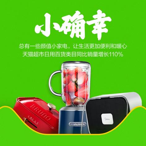 “點(diǎn)滴生活中的小確幸,才能心底溫暖地度過2020的每一天。”暢銷小說作家喬維在天貓超市添購的早餐機(jī)、電動(dòng)泡沫洗手機(jī)、水暖毯等生活小家電總額超過了以往任何一年。