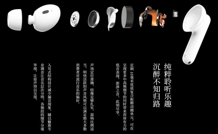POP Pro 使用了全新定制的 10mm 優質雙重復合振膜動圈單元,可在呈現更多中高頻細節的同時,帶來渾厚有力的低音表現。入耳式的結構設計有效減少了漏音現象,輔以魅族聲學與阿鯤老師的專業調音讓音樂層次分明,各頻段的細節分毫畢現,讓原聲得以呈現??偠灾琍OP Pro 延續了魅族聲學專業的調音,聲場定位準確,結像足夠扎實,混響比例適當,明快活躍的聲音風格相信可以滿足絕大多數消費者對流行音樂的偏好。