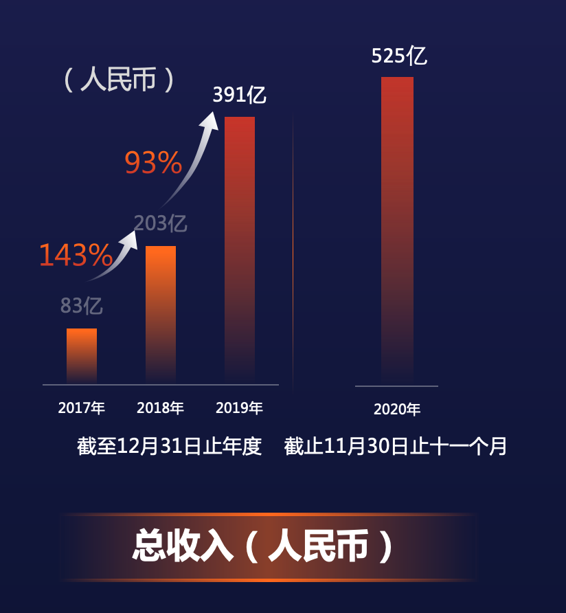 資料顯示,快手在去年三季度后的兩個月里收入大漲,其截至2020年前11個月實現營收525億,相比前9月大漲108億。以未經審計的口徑計算,快手去年前11月實現毛利209億,毛利率為39.9%。