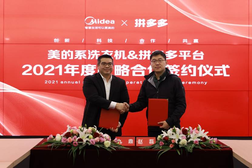 速途網3月8日消息(報道:李楠)今日,美的集團智能家居事業群洗衣機事業部總裁趙磊與拼多多戰略副總裁九鼎作為雙方機構代表在上海簽署戰略合作協議,雙方將在智能清洗領域進一步加深合作。美的與拼多多將聯合推出符合消費者需求的定制款洗衣機,預計總量超過100萬臺;同時美的、小天鵝洗衣機在拼多多的銷售目標定為20億元。