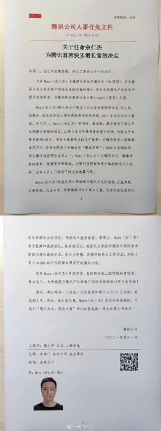 首先上場(chǎng)的是騰訊,一項(xiàng)全新的高管任命讓“余仁杰”出現(xiàn)在大眾視野。乍一看,這次任命,代表了騰訊業(yè)務(wù)的全新部署。不過如果你一時(shí)還沒有領(lǐng)悟到,也沒關(guān)系,畢竟張一鳴也不能。但有一點(diǎn)你應(yīng)該清楚,這其中有詐啊。這位鐵汁Moyu(余仁杰)的英文名不就是摸魚嘛!中文名當(dāng)然就是愚人節(jié)啦……另外,任命的最后一段,藏著這么一句話:“請(qǐng)大家注意,Moyu(余仁杰)及其任命是假的”。