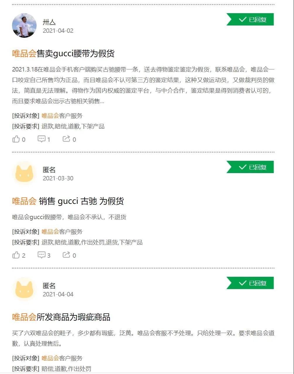 回到這次真假Gucci腰帶事件,目前已經有用戶收到了唯品會的退款,同時仍有部分用戶向廣州互聯網法院提起訴訟申請,要求唯品會假一賠三并道歉。?