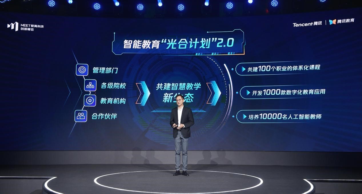 速途網4月20日訊(報道:王璇)今日,第二屆MEET教育科技創新峰會在北京舉辦。大會現場, 騰訊公司高級執行副總裁、云與智慧產業事業群總裁湯道生正式宣布騰訊教育將在去年基礎上升級推出“光合計劃2.0”,設定新的“百千萬”的目標——共建100個職業的體系化課程、助力行業開發1000款數字化教育應用、助力培養10000名人工智能教師,攜手各級院校、教育機構、合作伙伴推進智慧教學的生態建設。