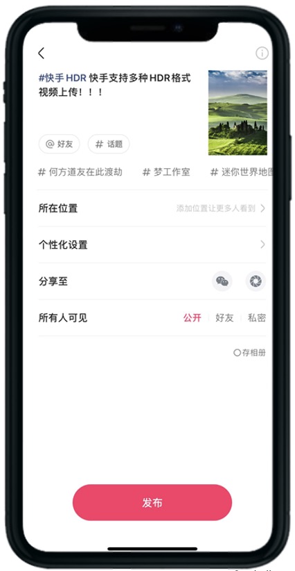 值得注意的是,作為業內首個支持HDR視頻拍攝和編輯的短視頻平臺,快手為用戶HDR視頻的創作提供了較高自由度。拍攝完成之后,用戶無需將HDR視頻轉換成普通SDR視頻,可立即根據自己的創作意圖對高對比度顯示的HDR視頻進行配樂、添加特效、剪輯等編輯操作。同時,快手還支持HDR視頻與普通SDR視頻的混合編輯。