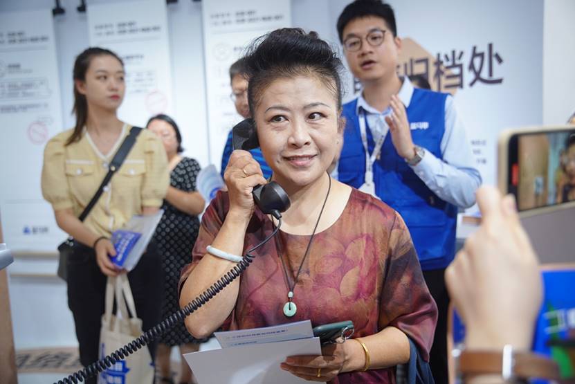 (圖:防騙展現場老年朋友體驗“叫醒熱線”)
