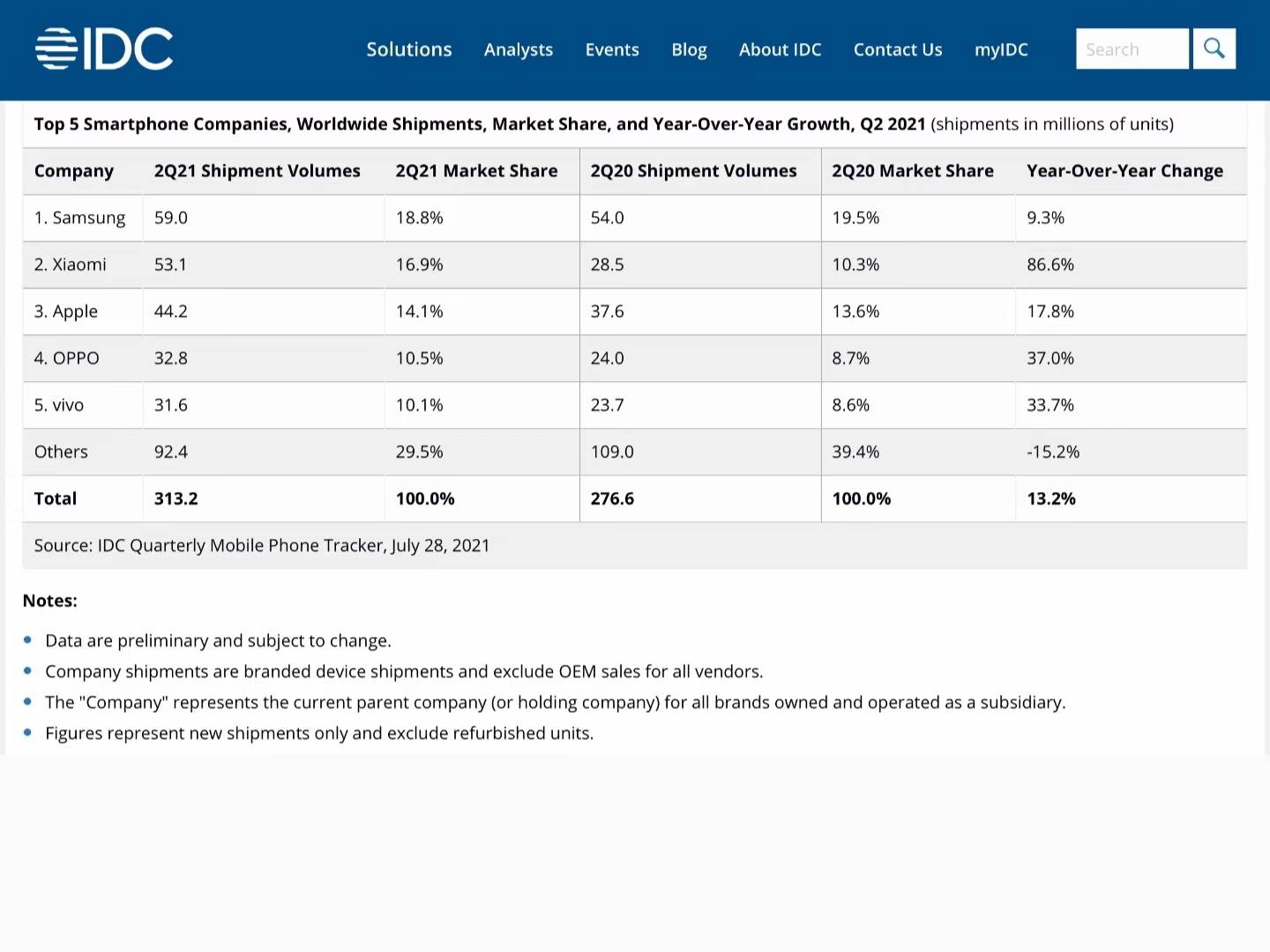 雖然在具體數字方面,各家調研機構存在略微差異,但整體看來小米2021年第二季度銷量超過52.8萬臺,同比增長超80%,成為這一季度增長最快的頭部手機企業,在銷量上超越蘋果,成為全球第二。
