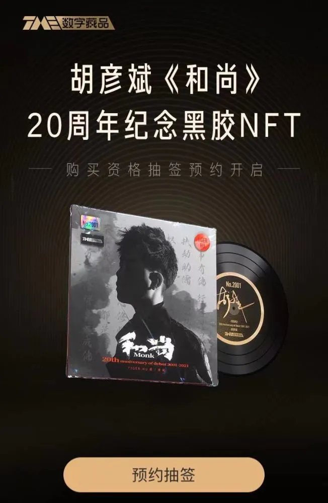 近日,騰訊音樂宣布,胡彥斌《和尚》20周年紀念黑膠NFT在QQ音樂平臺開啟購買資格的抽簽預約,限量發售2001張。這是騰訊音樂首次將音樂與NFT技術相結合發行“數字藏品”。