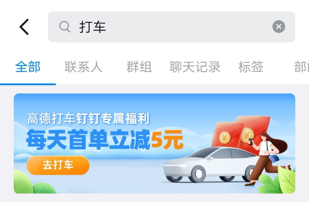 與此同時,即日起,釘釘個人用戶搜索“高德”或“打車”,就可以使用高德打車服務了。9月9日前,用戶在釘釘上用高德打車,可以領取每天首單立減5元的優惠,多平臺一鍵呼叫、一鍵比價,打車更快更省錢。