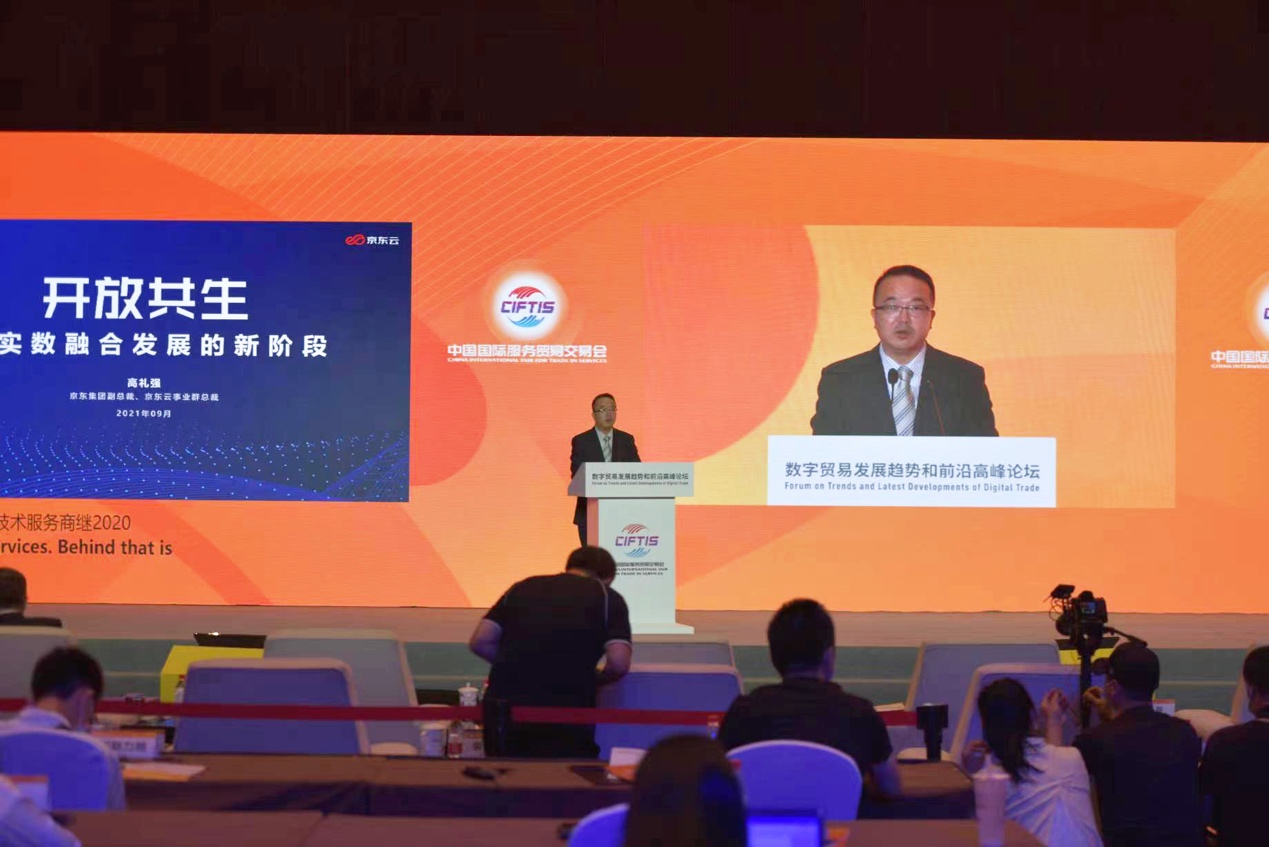 速途網(wǎng)9月3日訊(報(bào)道:?jiǎn)讨颈螅┤涨埃袊?guó)國(guó)際服務(wù)貿(mào)易交易會(huì)在北京拉開帷幕。在數(shù)字貿(mào)易發(fā)展趨勢(shì)和前沿高峰論壇上,京東集團(tuán)副總裁、京東云事業(yè)群總裁高禮強(qiáng)親臨現(xiàn)場(chǎng)并發(fā)表了主題演講。