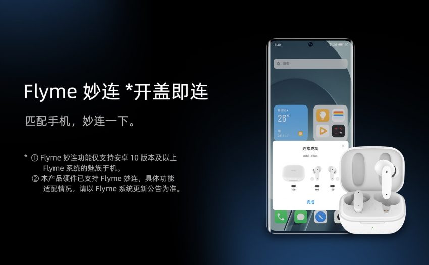 在功能性上,魅藍?Blus?主動降噪耳機還支持了備受好評的?Flyme?妙連功能(后續?Flyme?更新支持),只需要輕撥耳機盒盒蓋,系統即可彈窗提醒,便捷連接,只在一瞬之間。