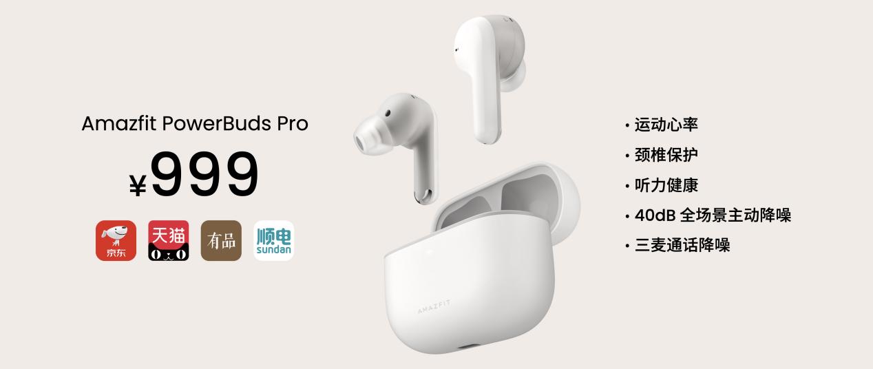 除此之外,Amazfit 躍我還發(fā)布了新一代真無線耳機 Amazfit PowerBuds Pro。Amazfit PowerBuds Pro 支持 40dB 專業(yè)全場景主動降噪,支持三麥通話降噪,滿足各種日常生活場景使用需求;耳機搭載了業(yè)內(nèi)領(lǐng)先的耳道式心率傳感器,帶來精準的運動心率監(jiān)測,并支持自動跑步識別、運動心率提醒;同時,Amazfit PowerBuds Pro 會跟蹤識別用戶的頭頸部姿勢,呵護用戶頸椎健康。