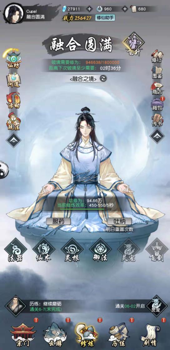 作為一款修仙放置類手游,《以仙之名》將“修煉”這一核心放置玩法用了最大的畫面予以呈現,讓所有玩家都能第一時間明白“這是重點”,其他的系統基本都會圍繞修煉積累各種資源而展開。