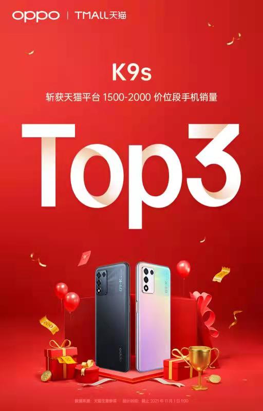 速途網11月1日訊(報道:喬志斌)今日,OPPO發布雙11開門紅戰報。數據顯示,僅35分鐘天貓官旗手機銷量&銷售額超去年全天,K9s 斬獲天貓平臺價位段銷量 TOP3。