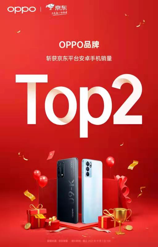 OPPO官旗斬獲京東安卓手機銷量TOP2。