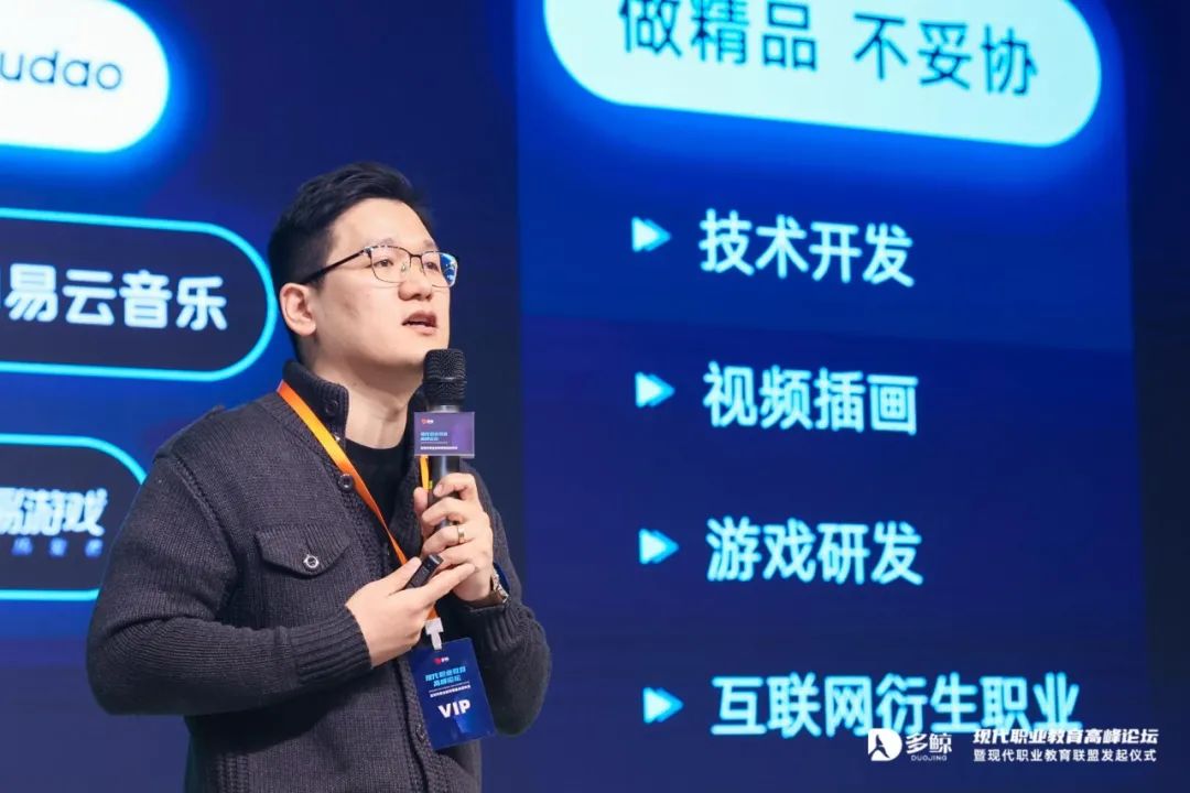 隨后,網易云課堂 IT 互聯網業務總監韓冬上臺分享《打通職業教育人才培養+人才輸送的閉環》主題演講。