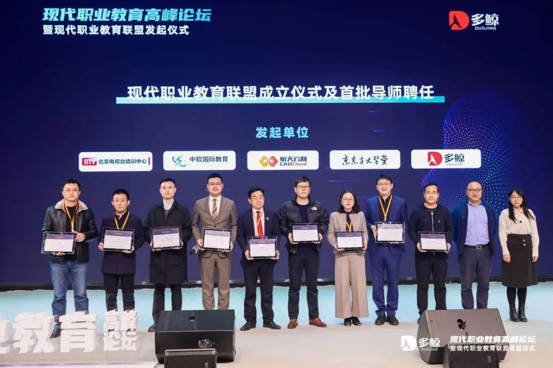 在現代職業教育高峰論壇上,多鯨聯合北京電視臺培訓中心、中軟國際教育、航天紫光、京東方教育科技(京東方大學堂)發起現代職業教育聯盟成立儀式,并公布首批智庫專家聘任名單。