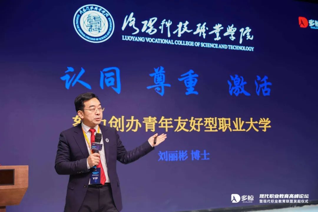 現代職業教育聯盟成立儀式之后,洛陽科技職業學院劉麗彬校長分享《認同、尊重、激活—— 努力創辦青年友好型職業大學》主題演講。