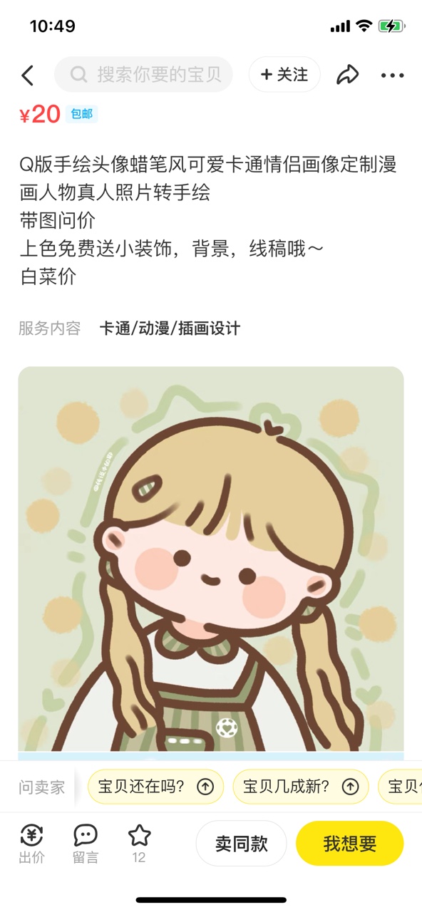 閑魚手繪頭像定制服務(wù)千變?nèi)f化,從大熱的ins風(fēng),到沙雕的鬼畜風(fēng);有的用戶一個(gè)人能hold住多個(gè)不同的畫風(fēng),有的用戶專門深耕一個(gè)畫風(fēng)。