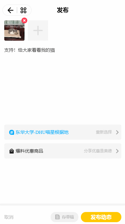 救助流浪貓咪的愛心暖意還不止于此,我們專門為每所學(xué)校開設(shè)了自己專屬的話題區(qū)域,大家可以在自己支持的學(xué)校話題里,持續(xù)關(guān)注流浪貓咪的近況,也可以分享一些自己身邊的小貓咪照片,和鏟屎官們聊聊天。