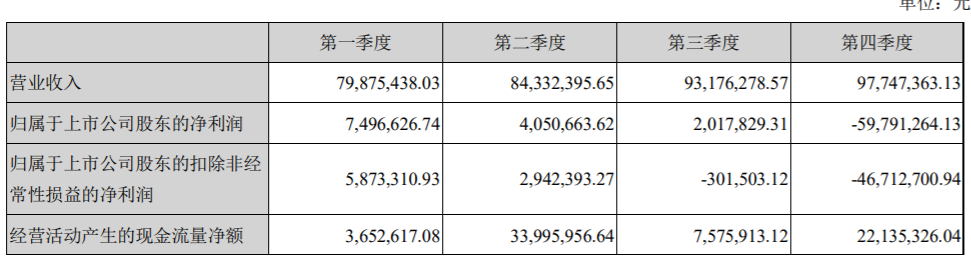 從季度營收來看,2021年一至四季度營收分別為0.799億元、0.843億元、0.931億元及0.977億元,歸屬上市公司股東凈利潤分別為0.075億元、0.041億元、0.020億元、-0.598億元。