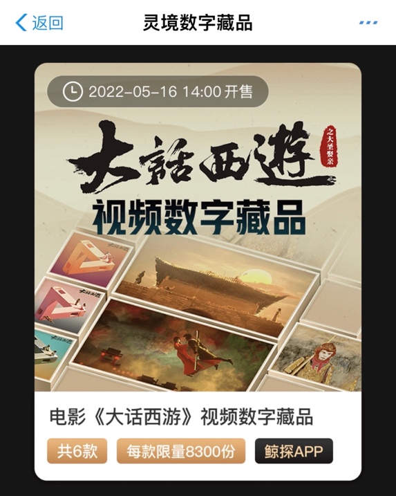 速途網(wǎng)5月16日消息(報(bào)道:李楠)今日,靈境文化攜手西安電影制片廠推出《大話西游》視頻數(shù)字藏品,以數(shù)字技術(shù)續(xù)寫這部國產(chǎn)佳作給影迷觀眾帶來的經(jīng)久感動。據(jù)了解,6款《大話西游》主題限量數(shù)字藏品上線后不久便一售而空。